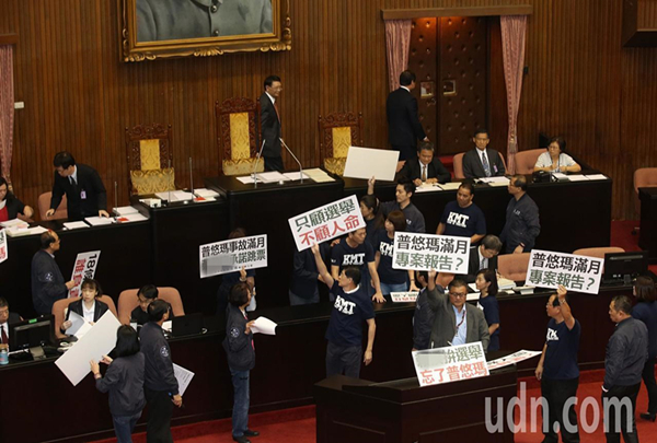 國民黨團對此無法接受,認為賴清德不能因為選舉就不管當初的協商推遲報告,破壞朝野協商機制,因此請賴清德于20日針對普悠瑪事故報告。20多名“藍委”高舉手板,大喊只顧選舉、不顧人命、“部長”下臺找出真相、“院長”負責。但民進黨籍的“立法院長”蘇嘉全并未接受國民黨團要求,國民黨“立委”林為洲從臺下跳上了主席臺,蘇嘉全宣布休息,國民黨“立委”趁機占領了主席臺。(中國臺灣網 李寧)