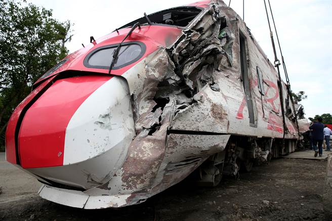 臺鐵普悠瑪6432次列車10月21日發生嚴重事故,車頭嚴重損毀。(圖片來源:臺灣“中時電子報”)