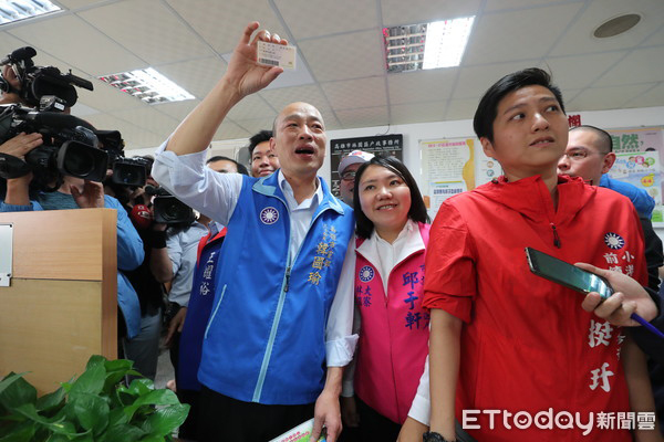 準(zhǔn)高雄市長韓國瑜19日傍晚接受媒體訪問,表示高雄市政府團(tuán)隊名單20日將正式公布,前市議員朱挺玗(圖右紅衣者)將接任高雄市海洋局長。(圖片來源:臺灣“東森新聞云”)