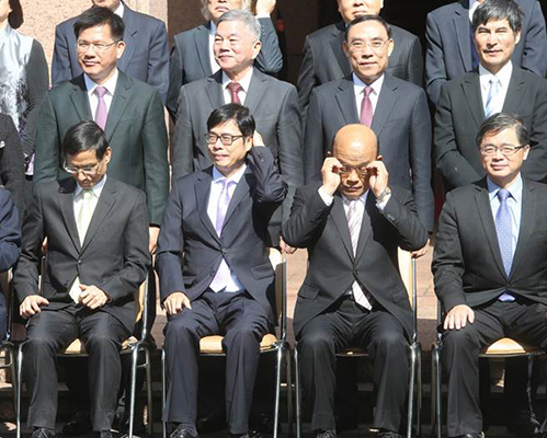 臺(tái)當(dāng)局新任“行政院長(zhǎng)”蘇貞昌今就任后,“行政院”團(tuán)隊(duì)大合影。(圖片來(lái)源:臺(tái)灣“中時(shí)電子報(bào)”)