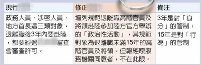 臺當局擬延長退休高官赴陸管制期為15年。(圖片來源:臺灣“中時電子報”)