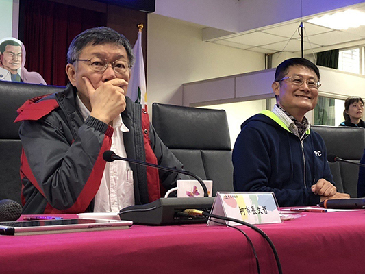 新北市長侯友宜因腰傷無法出席“柯侯會”,改由副市長陳純敬(右)代理。(圖片來源:臺灣《聯(lián)合報》)