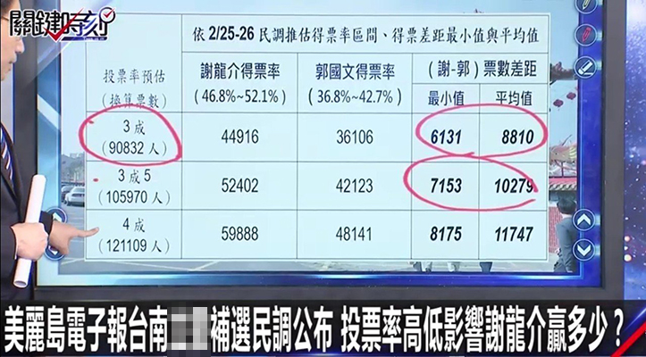 吳子嘉在政論節(jié)目上公布民調(diào)。(圖片取自臺媒)