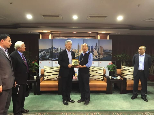 高雄市副市長葉匡時19日在臉譜網(wǎng)(facebook),貼出由春秋集團(tuán)董事長王正華領(lǐng)隊(duì),拜訪高雄市長韓國瑜,雙方互贈紀(jì)念品的照片,王正華表示,希望兩岸航空主管機(jī)關(guān)能早日協(xié)商予以支持。