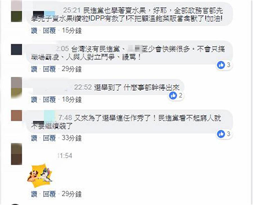 不過,對于蔡英文的這一舉動,網友卻表示,“選舉到了才想起農民了,平常他哪管農民死活呢”“又來了!選舉到了開始開支票騙選票”“花六萬(新臺幣)請專人主廚煮飯的人,會在乎基層農民的生活?你在騙誰啊”“多為農民做事吧”!(中國臺灣網 賈若瀾)