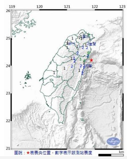 中國臺(tái)灣網(wǎng)4月10日訊 據(jù)臺(tái)灣“中央社”報(bào)道,根據(jù)臺(tái)灣氣象局最新信息,今天(10日)早上6時(shí)57分,臺(tái)灣東部海域發(fā)生4.9級地震,地震深度24.8公里,震中位于花蓮縣政府東北方33.7公里(位于臺(tái)灣東部海域),最大震度花蓮縣太魯閣4級。據(jù)臺(tái)灣“中時(shí)電子報(bào)”報(bào)道,臺(tái)北地區(qū)明顯感受到好幾秒的搖晃。