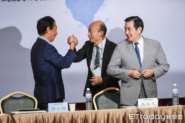 30日下午馬英九召集的論壇活動中,郭臺銘韓國瑜互動良好。(圖片來源:臺灣“東森新聞云”)