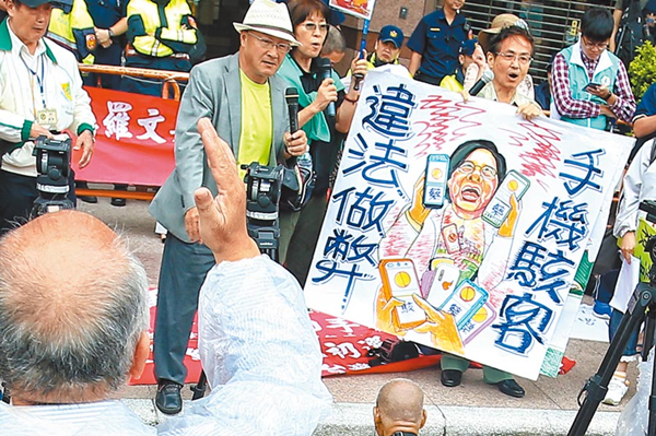 民進黨中執會29日討論2020初選辦法,賴清德的支持者至民進黨中央前聲援,高喊蔡英文違法作弊。(圖片來源:臺灣“中時電子報”)
