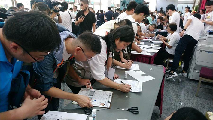 臺北市長柯文哲8日成立政黨“臺灣民眾黨”,許多支持者到場登記加入政黨,表示支持。(圖片來源:臺灣“中時電子報”)