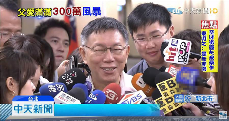 柯文哲被問到是否覺得300萬有什么問題時說,“這要問當事人還有他兒子啊,我只是說他大概年紀太大了,不會用這種現代電子轉帳的技術,所以只好提著這么多的現金,不然銀行轉帳就好了”。