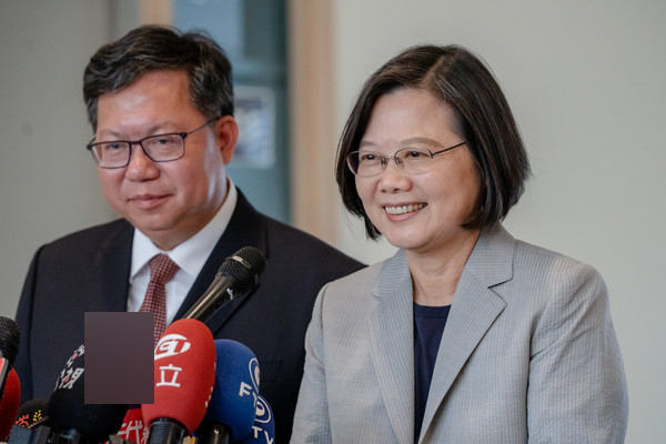 臺灣地區(qū)領(lǐng)導(dǎo)人蔡英文與桃園市長鄭文燦。(圖片來源:臺灣“東森新聞云”)