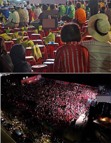 蔡英文高雄競(jìng)選總部成立會(huì)(上)與韓國(guó)瑜和新北“立委”參選人的聯(lián)合造勢(shì)(下)對(duì)比。(合成圖)