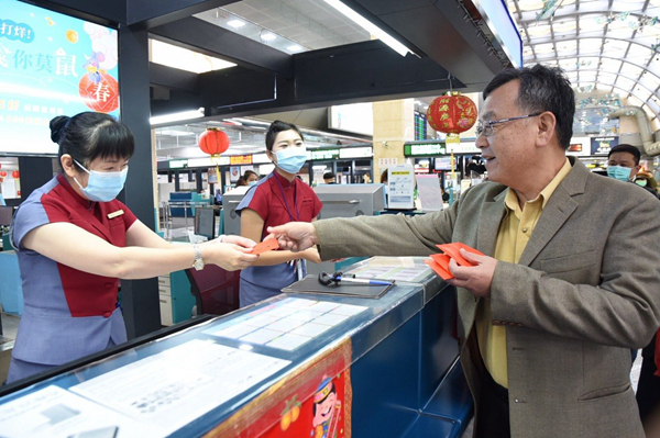 澎湖縣長賴峰偉視察澎湖機場運輸情況,發(fā)紅包感謝值班人員辛苦。(圖片取自臺媒)