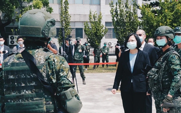 上周蔡英文視察臺陸軍某指揮部,每位官兵都戴口罩,不過一般部隊(duì)可未必有如此“豪華”待遇。(圖片取自臺媒)
