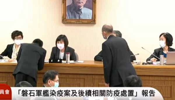 陳道輝表示,他用生命保證,絕對沒有隱瞞任何疫情,如果知道已經有人感染,一定會遵照民進黨當局防務主管部門的命令立刻返航。國民黨“立委”呂玉玲問,是誰決定讓人員在左營軍港解散的?陳道輝說“我沒這個權限”,但確實沒有按照自己的想法去做,他是“按照命令執行”。他表示,這是他穿上白軍服30年來最痛苦的時刻,強調沒有做對不起大家的事。只是陳道輝話還沒說完,敖以智、梅家樹就馬上到主席臺把電話拿走。主持人劉寶杰在新聞節目《關鍵時刻》上直言,都什么時候了,這么大的事情,到底誰該負責,竟還沒有答案,還在官官相護。