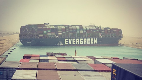 臺灣長榮貨輪卡蘇伊士運河 全球貨貿每小時損失4億美元。(圖片來自臺媒)