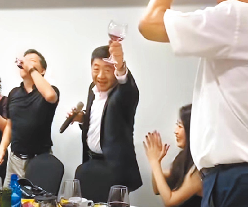 據(jù)臺灣“中時新聞網(wǎng)”報道,日前,陳時中一段疫情期間參加聚會飲酒唱歌的視頻在網(wǎng)絡(luò)上瘋傳。視頻中,身著西裝外套的陳時中開心高歌,并與一旁友人敬酒,且有數(shù)名長發(fā)女子陪同。在場人員無一佩戴口罩,也沒有保持社交距離。有網(wǎng)友質(zhì)疑,該視頻是在臺灣防疫“三級警戒”期間拍攝。