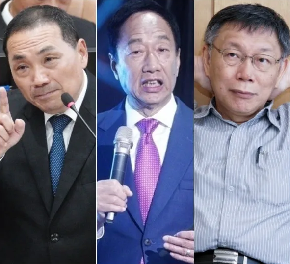 2024年臺灣地區(qū)領(lǐng)導人選舉,臺灣鴻海集團創(chuàng)辦人郭臺銘(中)宣布“獨立參選”,與中國國民黨參選人侯友宜(左)、民眾黨參選人柯文哲的“在野”整合備受矚目。(合成圖,圖片來自臺媒)