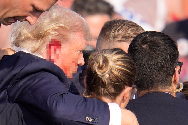13日傍晚美國前總統特朗普在賓夕法尼亞州巴特勒市舉行的競選集會現場發生槍擊事件。(圖片來源:臺灣“中時新聞網”)