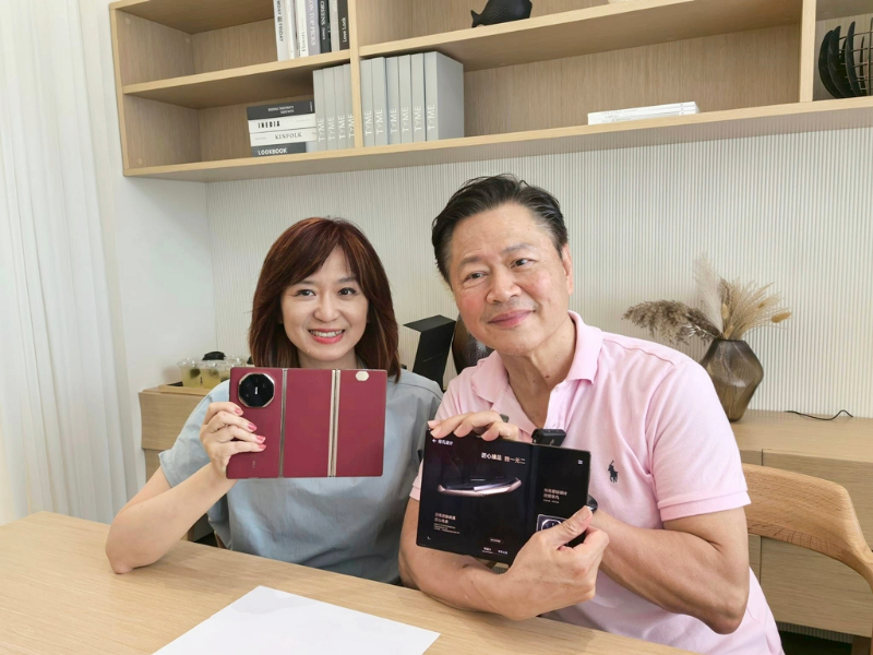 搶先試用華為三折疊屏機 周玉琴、賴岳謙惹臺灣網友羨慕