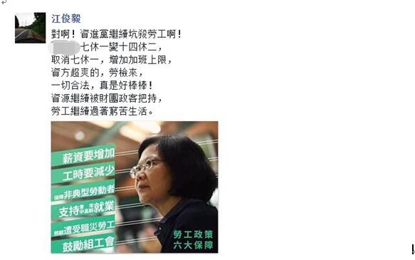 這里再給各位講個(gè)知識(shí)點(diǎn):在島內(nèi)現(xiàn)行的“勞基法”中規(guī)定“勞工每七日中應(yīng)有二日之休息,其中一日為例假,一日為休息日”,但未明說例假應(yīng)該怎么排,故而早期時(shí)有“七休一”函釋,即為兩例假應(yīng)間隔6個(gè)工作日,但如征得工會(huì)或勞工同意,例假可挪移,后因可連上12天班的“弊端”遭批;之后蔡英文當(dāng)局上任,另以新“函釋”廢止舊“函釋”,又規(guī)定兩例假間最長(zhǎng)就是6天,硬性規(guī)定了“一例一休”,但沒想到這次的“修法”卻又松綁了“七休一”……新黨新思維中心主任侯漢廷也在臉譜網(wǎng)怒斥稱:有關(guān)“一例一休”每一個(gè)修訂,都是越修越糟!