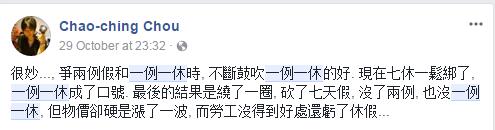 更有網(wǎng)友直言:“一例一休”讓“臺(tái)灣變成第二個(gè)日本指日可待了”。