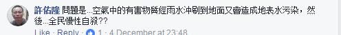 現在,重點來了,有臺灣網友質疑,若真的可以實現“人造雨”的話,那雨水里融進了空氣中如硫化物之類的有害物質,不就形成了“酸雨”,再降落到地面或農田的話,不僅會造成地表水的污染,民眾吃下或喝下的也都是有害物質啊,這不就相當于全臺灣的民眾都在慢性自殺嗎?