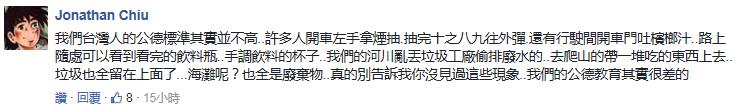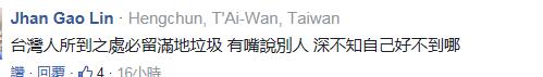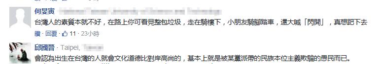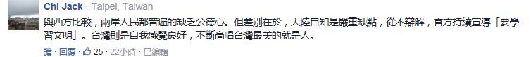 崗山之眼的不文明游客行徑一經(jīng)曝光便引發(fā)了許多臺灣網(wǎng)友的談?wù)摚?strong>其中很大一部分人認(rèn)為臺灣人的公德標(biāo)準(zhǔn)確實(shí)不高,需要改進(jìn),“臺灣人本來就沒有比較優(yōu)越,作過服務(wù)業(yè)的就知道”、“以前在機(jī)構(gòu)服務(wù)最討厭的就是臺灣人”。