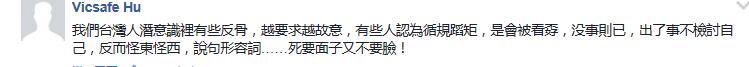 論語有言“見賢思齊焉,見不賢而內(nèi)自省也”,如今與經(jīng)濟(jì)、軍事這些“硬實(shí)力”相比,文化、素養(yǎng)這般的“軟實(shí)力”更受重視,既然“臺灣最美的風(fēng)景是人”,那如何捍衛(wèi)這句話,使之成為不爭的事實(shí)而非打臉的諷刺,就是全臺民眾所要解決的當(dāng)務(wù)之急了。