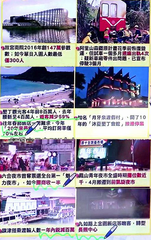 臺北站通常是大多數(shù)赴臺游客的必去之地,但像花蓮、高雄或澎湖之類的地方卻不見得會“打卡”,反倒是大陸客因?qū)Π⒗锷健⑴旌䴙车鹊貞延刑厥馇榻Y(jié),多會紛沓而至,但如今陸客赴臺潮已退,其他地區(qū)的游客也對“阿里山的姑娘小伙”和“晚風(fēng)吹拂的澎湖灣”不甚感冒,中南部的觀光業(yè)可謂每況愈下。