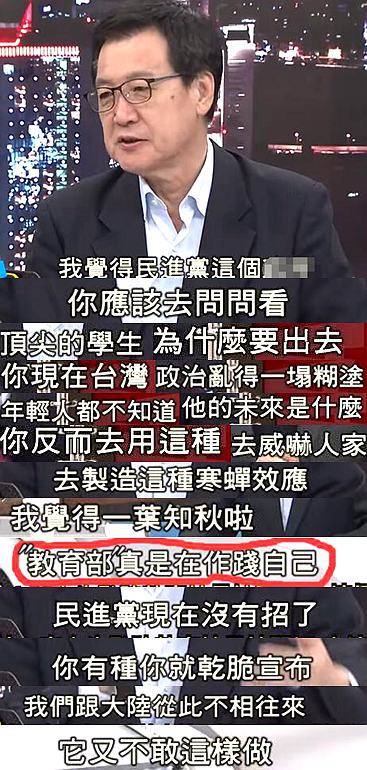 也許對于民進黨員而言,讓他們擔心的不是臺灣教育的未來或者人才外流的問題,而是學生若被大陸“洗腦”就麻煩了……