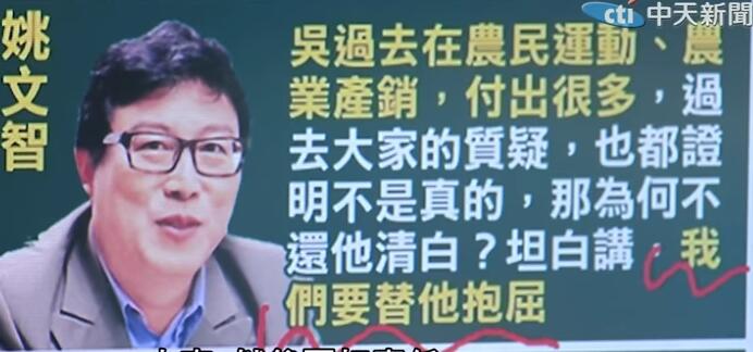 接著出場的是民進(jìn)黨臺(tái)北市長候選人姚文智,他說吳音寧啊過去在農(nóng)村社會(huì)、農(nóng)村運(yùn)動(dòng)及農(nóng)業(yè)產(chǎn)銷長期付出很多,“過去大家質(zhì)疑吳的問題,但事后證明都不是真的”,而針對如今外界對吳音寧的種種不滿,姚更大呼“我們真的要為吳音寧抱屈”;