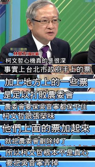 “主委”林聰賢力挺吳音寧,不僅夸贊說她上任以來農(nóng)產(chǎn)品的平均價(jià)格都很穩(wěn)定,還稱她是“進(jìn)入都市叢林的政治菜鳥”;