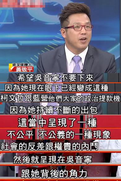 民進(jìn)黨民代黃偉哲也在政論節(jié)目中舌戰(zhàn)“懟吳團(tuán)”,不僅說吳音寧品操?zèng)]問題,從沒做過“自我圖利”的事兒,還指責(zé)外界明明沒有把所謂“公關(guān)費(fèi)”的制度建好,卻還硬要先把吳音寧“斗臭斗倒斗垮”。