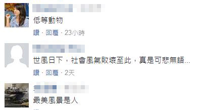 民眾將影片拍下PO上網(wǎng),引發(fā)熱議,“世風(fēng)日下,社會(huì)風(fēng)氣敗壞至此,真是可悲無語”,更有網(wǎng)友諷刺道:這是“低等動(dòng)物”的行為!