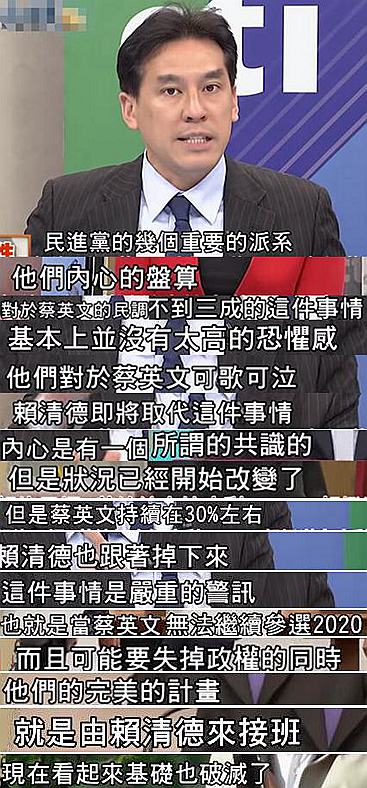 黃暐瀚指出,對于蔡英文民調的持續下跌,民進黨的幾個重要派系及一些“獨派大佬”其實并不驚訝,因為還有賴清德可以接替,但如今蔡賴二人皆失綠營民心,民進黨的政權恐遭嚴重打擊;而為保政權,黃認為民進黨接下來會有“棄蔡保賴”的動作。