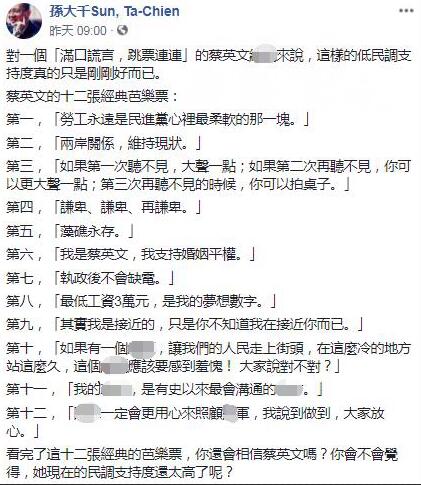 還有網友表示“蔡英文不止這些芭樂票”,為此還很“感謝”她:因為蔡英文加速了民進黨的滅亡!