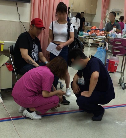 情侶檔包扎完傷口后還舍不得離開,向護理師索討更多紗布。護理師提醒他們到藥局買紗布,女友仍不斷索討,表示男友“回去洗完澡會用到”。情侶檔索取紗布不成,男傷患竟惱羞大吼:“好了!不用跟那種人講那么多,她聽不懂話。”