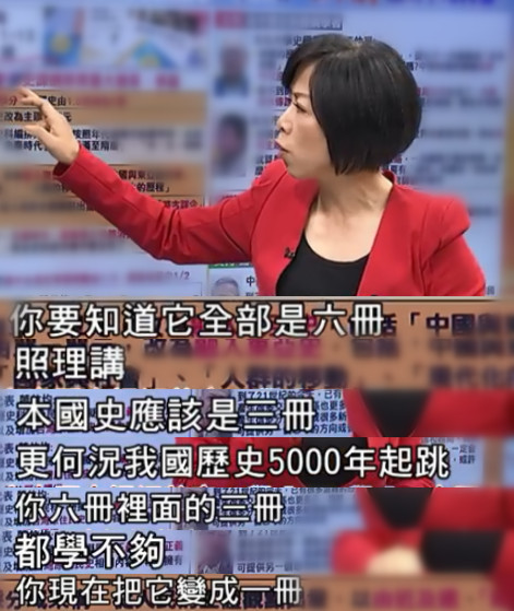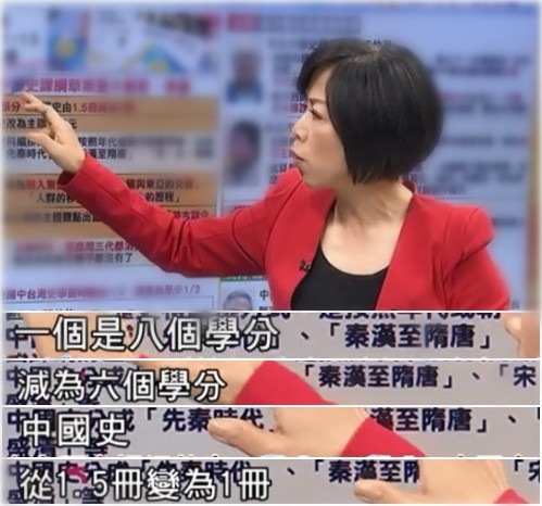 從8學(xué)分變成6學(xué)分,教材也從1.5冊(cè)變成了1冊(cè),要知道臺(tái)灣的歷史教材總共是6冊(cè),中國(guó)史竟然只占六分之一。