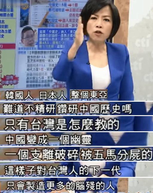 但對于民進黨而言,似乎這樣還不夠,所以他們爽性將“中國史”整個拿掉,黃智賢為此痛批,在韓國人、日本人,甚至整個東亞都在精研中國歷史的時候,臺灣的教育竟是將“中國變成一個幽靈”,如此只會造成臺灣下一代“有更多腦殘的人”。