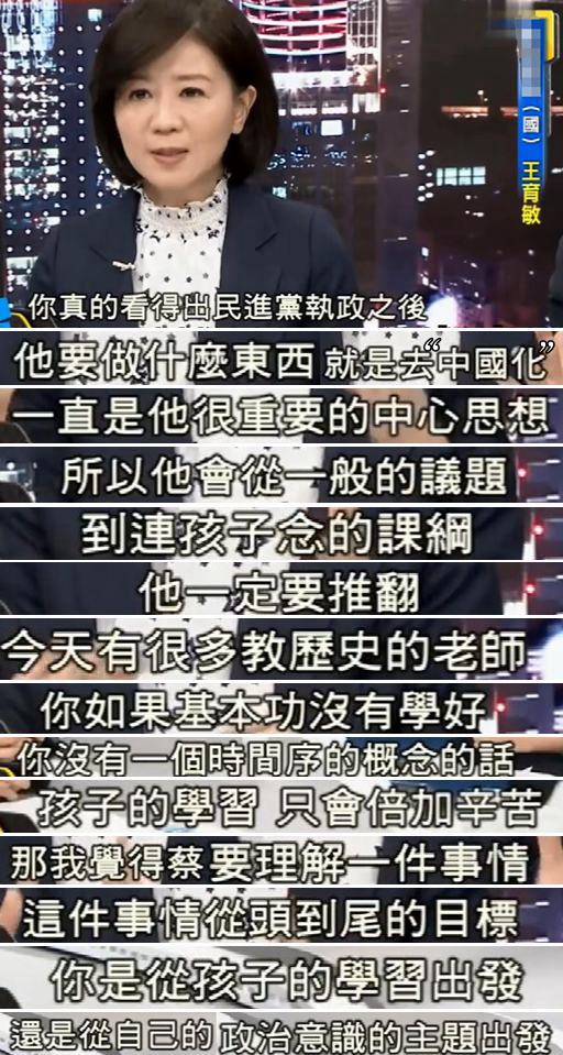 我們都知道,教育之所以重要,就因為他對于一個人價值觀、人生觀、世界觀等的塑造和影響起著難以忽視的作用,而在我們汲取的知識中又有相當一部分來源于學校的書本,黃智賢以舊課綱、現行課綱及未來課綱做對比,表示自己做學生時學的“中國史叫本國史”,所以她從始至終都堅定地認為“自己是個中國人”、“臺灣人就是中國人”!