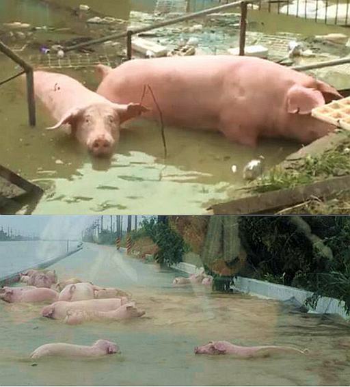 據(jù)臺(tái)媒報(bào)道,暴雨也造成養(yǎng)豬戶重創(chuàng)。島內(nèi)網(wǎng)絡(luò)流傳臺(tái)19在線豬只集體游水逃難,但是逃不過急流,水退后遍地豬尸,為此,臺(tái)軍還上演了一出“搶救豬只大作戰(zhàn)”呢~據(jù)悉這些奉命穿上簡(jiǎn)易防護(hù)衣的臺(tái)軍,或解救受困鐵絲網(wǎng)的豬只或清運(yùn)散布路上的豬尸,有的死豬已腫脹,但官兵也只能掩面力抬。