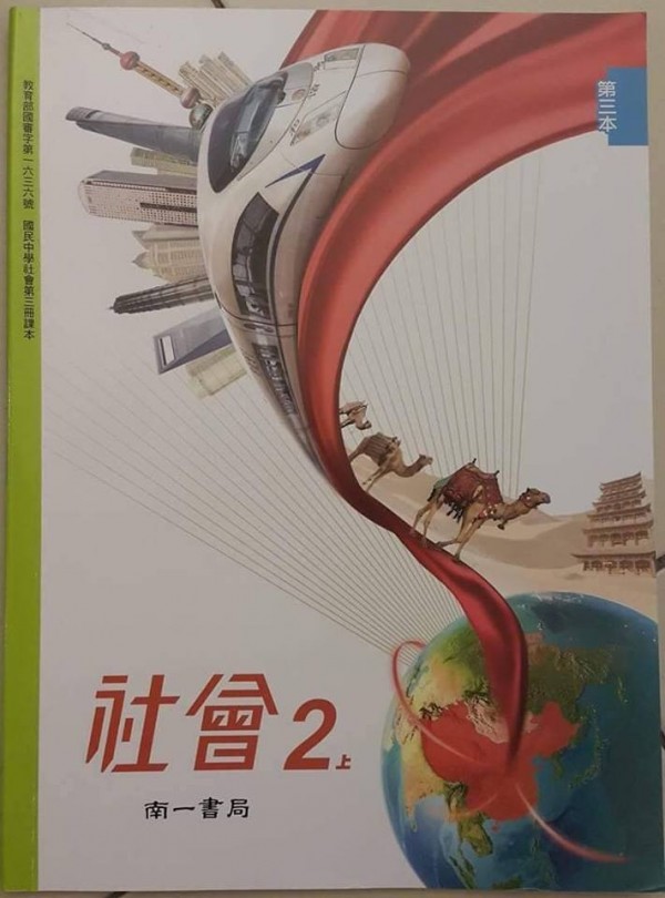 事情是這樣嬸兒滴,臺灣南一書局的初二社會課本封面,使用了大陸高鐵、上海東方明珠塔等圖像,竟然被臺北教育大學名譽教授李筱峰說像大陸的“政治宣傳海報”,并認為“封面不須如此吹捧中國”。