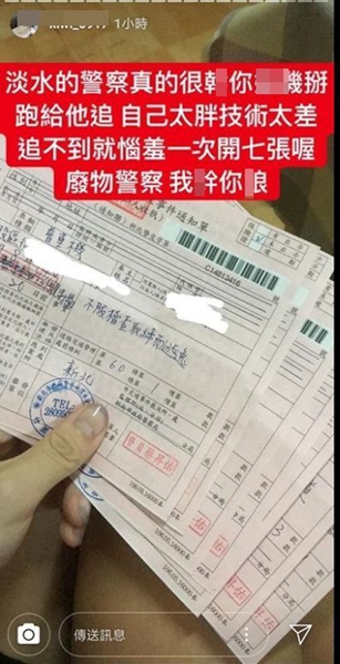 新北市一名辣妹日前騎車經(jīng)過(guò)新北市淡水中正東路二段時(shí),因沒(méi)戴安全帽遭警方鳴笛示意攔查,不料該女卻拒檢不甩警方,一路蛇行狂飆,連闖2個(gè)紅燈才被攔下,員警依行車記錄儀內(nèi)容,連開7張罰單,該女子接到罰單后,遂在IG發(fā)文辱罵員警,“廢物警察,我XX娘!”,淡水警方強(qiáng)勢(shì)偵辦,并將依“侮辱公署罪”通知該女到案說(shuō)明。