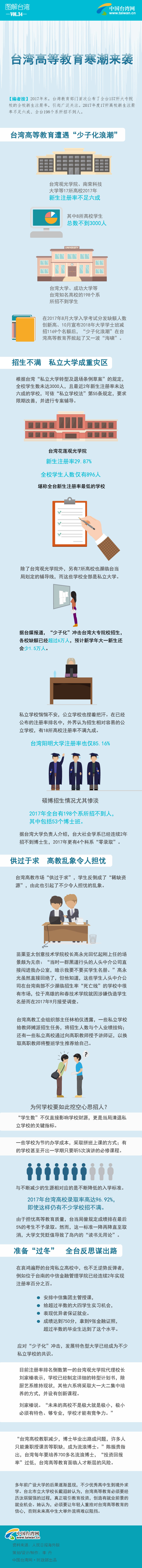 【編者按】2017年末,臺灣教育部門首次公布了全臺157所大專院校的全校新生注冊率,引起廣泛關(guān)注。2017年度17所高校新生注冊率不足六成、全臺198個系所招不到人。