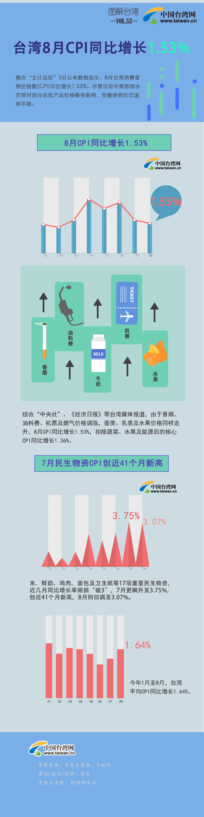 【圖解臺灣】臺灣8月CPI同比增長1.53%