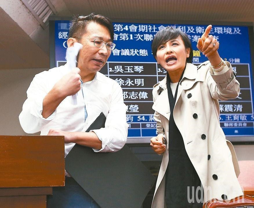 徐永明(左)遭邱議瑩(右)諷“你們太陽花已崩潰了”。(圖片來源:臺灣《聯(lián)合報》)