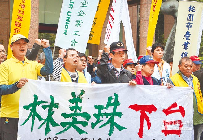 臺鐵等勞工團(tuán)體因向勞動部門申請不當(dāng)勞動行為裁決遭到駁回,20日集結(jié)在勞動部門抗議,要“勞動部長”下臺。(圖片來源:《中國時報》)
