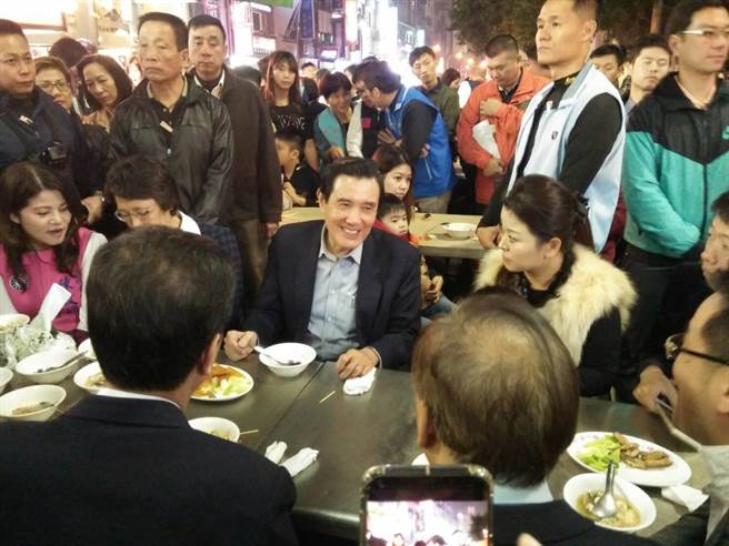 馬英九南下高雄到六合夜市幾乎每攤位都停留,因有“馬英九”這3字,就能吸引陸客!(圖片來源:臺灣《中時電子報》)