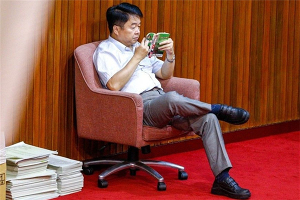 前“國發(fā)會(huì)主委”管中閔于“立法院”總質(zhì)詢時(shí),在臺(tái)下看《古春風(fēng)樓瑣記》。 (圖片來源:臺(tái)灣《聯(lián)合報(bào)》)